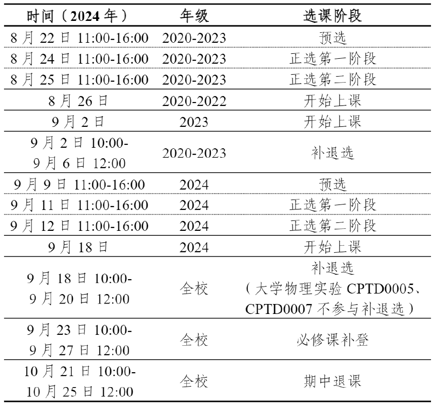 4.个别选修课为小班授课,预选后掉课为正常现象,不能增加名额。