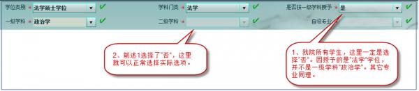 2、信息系统录入时的选项选择,是否按一级学科授予,选择“否”。