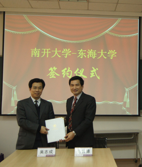 院长吴志成教授与东海大学社会科学学院院长宋兴洲教授签署了两院之间的合作协议。