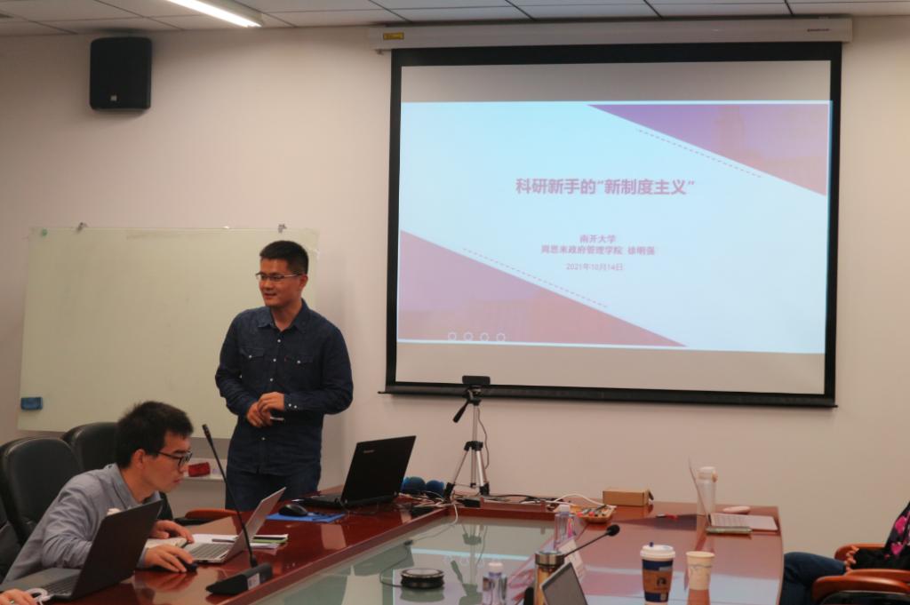 第五期博士生学术工作坊“青年学者学术经验分享专场(一)”于2021年10月14日下午2点在学院324会议室举办。本期学术工作坊是特别专场,形式新颖,改变了博士生汇报论文,与谈嘉宾与同学点评交流的组织方式,邀请了优秀青年学者与在读研究生分享学术经验。南开大学中国政府发展联合研究中心研究员吴晓林教授,南开大学政治学系讲师凌争,助理研究员李鑫涛、徐明强、王翔等优秀青年学者与近六十余名同学,交流经验,碰撞思想,畅谈学术,就如何开展学术研究这一主题,分别在研究问题探索、理论学习与对话、研究方案选择等方面进行了充分的经验分享与讨论交流。2020级行政管理专业博士生陈璐担任学术主持人。深秋时节天气转凉,政府学院学子共聚一堂,追求学术的热情,消退了深秋的寒冷。