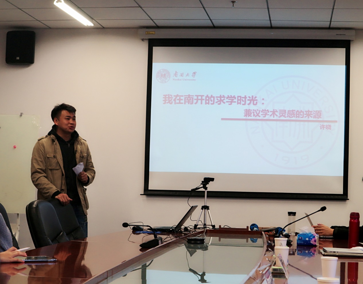 许晓老师分享的题目为《我在南开的求学时光:兼议学术灵感的来源》,他以个人在南开求学期间的经历为线索,向与会同学分享了他在博士阶段学习科研的心得与体悟。许晓老师从阅读、交流、生活三个主题入手,指出文献阅读对于激发学术灵感与提高写作水平的重要性,呼吁与会同学进行真诚的分享与沟通,并建议保持对生活的深度感知。
