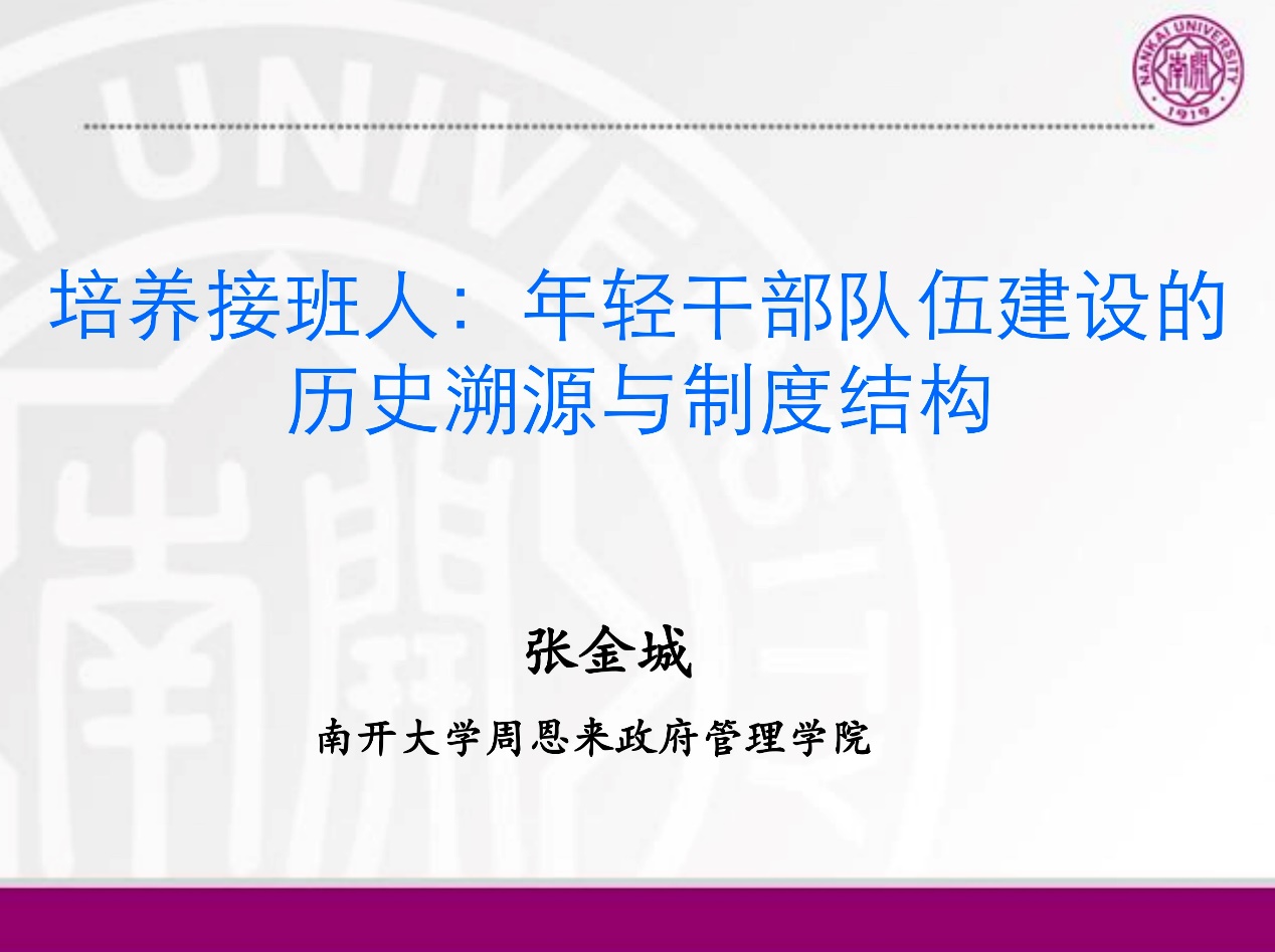 张金城:《培养接班人:年轻干部队伍建设的历史溯源与制度结构》