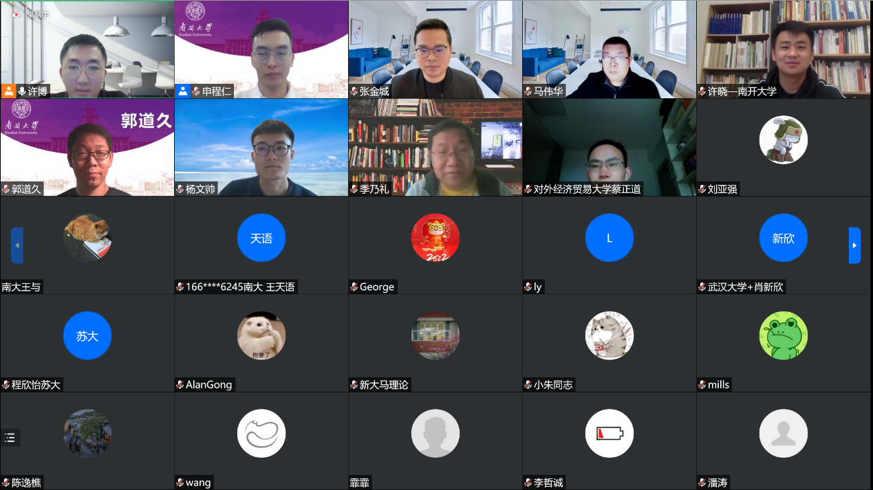 第十二期“博士生学术工作坊”于线上成功举办。本期工作坊的主讲人为2021级政治学理论专业博士研究生杨文帅、申程仁,2019级政治学理论专业博士研究生张金城,由2021级政治学理论专业博士研究生许博担任主持。本期工作坊邀请到郭道久教授、季乃礼教授、马伟华教授和助理研究员许晓老师对博士生的学术报告进行点评与指导。虽然疫情形势依旧不甚乐观,但这并未阻挡大家对于学术交流的渴望,来自全国各大高校共90余人共赴这场思想之约,就三位主讲人的研究展开积极热烈的讨论。