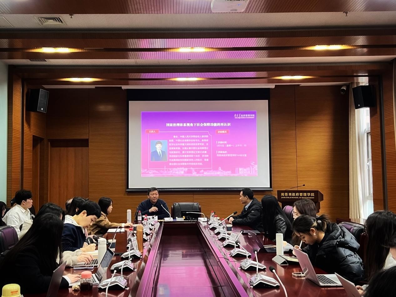 于学院144会议室举办了题为“国家治理体系视角下社会保障功能的再认识”的讲座。本次讲座由中国人民大学劳动与人事学院教授、中国社会保障学会秘书长鲁全主讲,政府学院院长吴晓林等出席,学院师生三十余人参加。