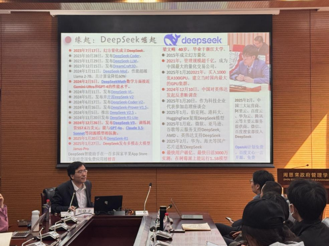 主办的“数智治理认知工作坊”第二期在学院144会议室成功举办。本期讲座以“DeepSeek原理及其在公共治理中的应用”为主题,特别邀请南开大学计算机学院、密码与网络空间安全学院教授、副院长,天津市政协委员、河北区政协副主席刘晓光担任主讲嘉宾,政府学院院长吴晓林教授、副院长郭道久教授出席。讲座由吴晓林教授主持,学院本硕博学生及教师代表参与交流。