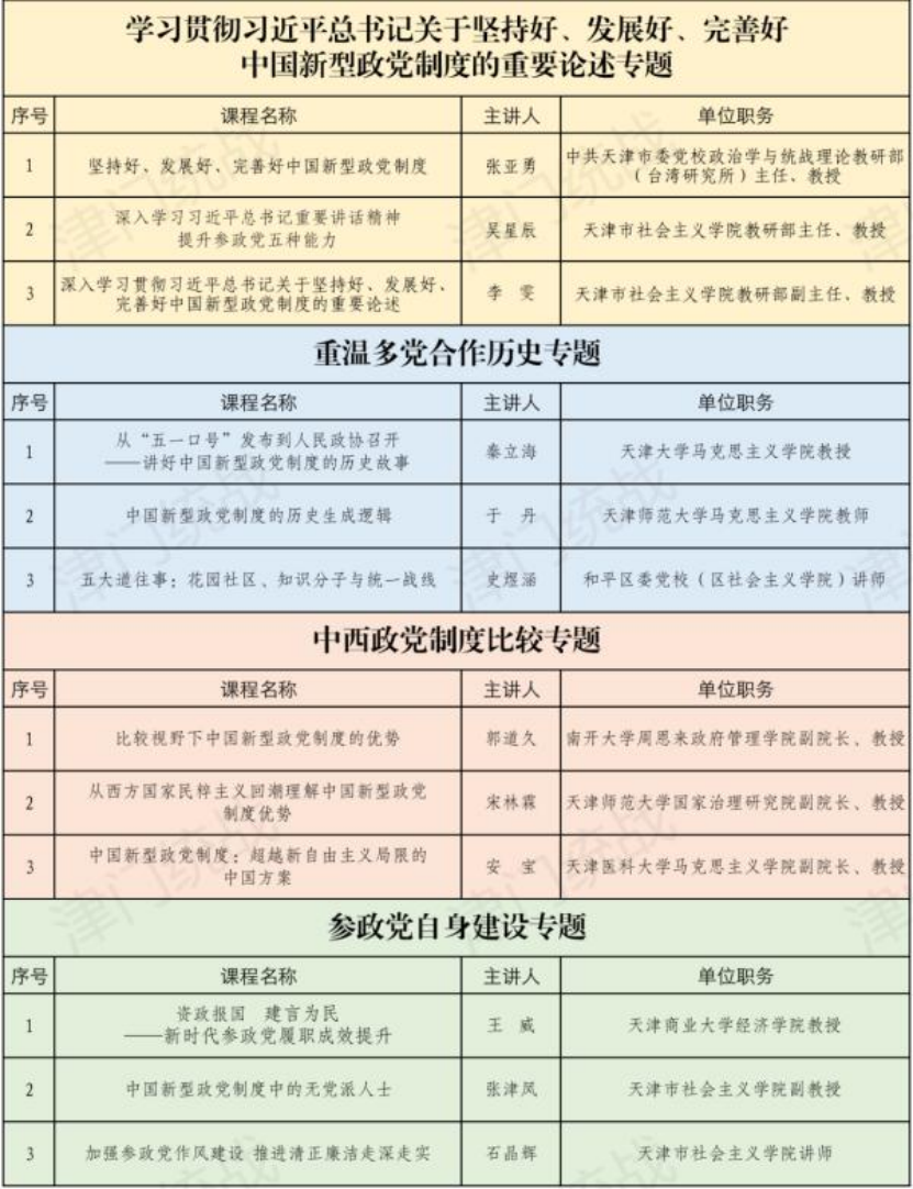 近日,中共天津市委统战部公布了2025年度天津市“中国新型政党制度”精品课目录,8bo8即时比分
