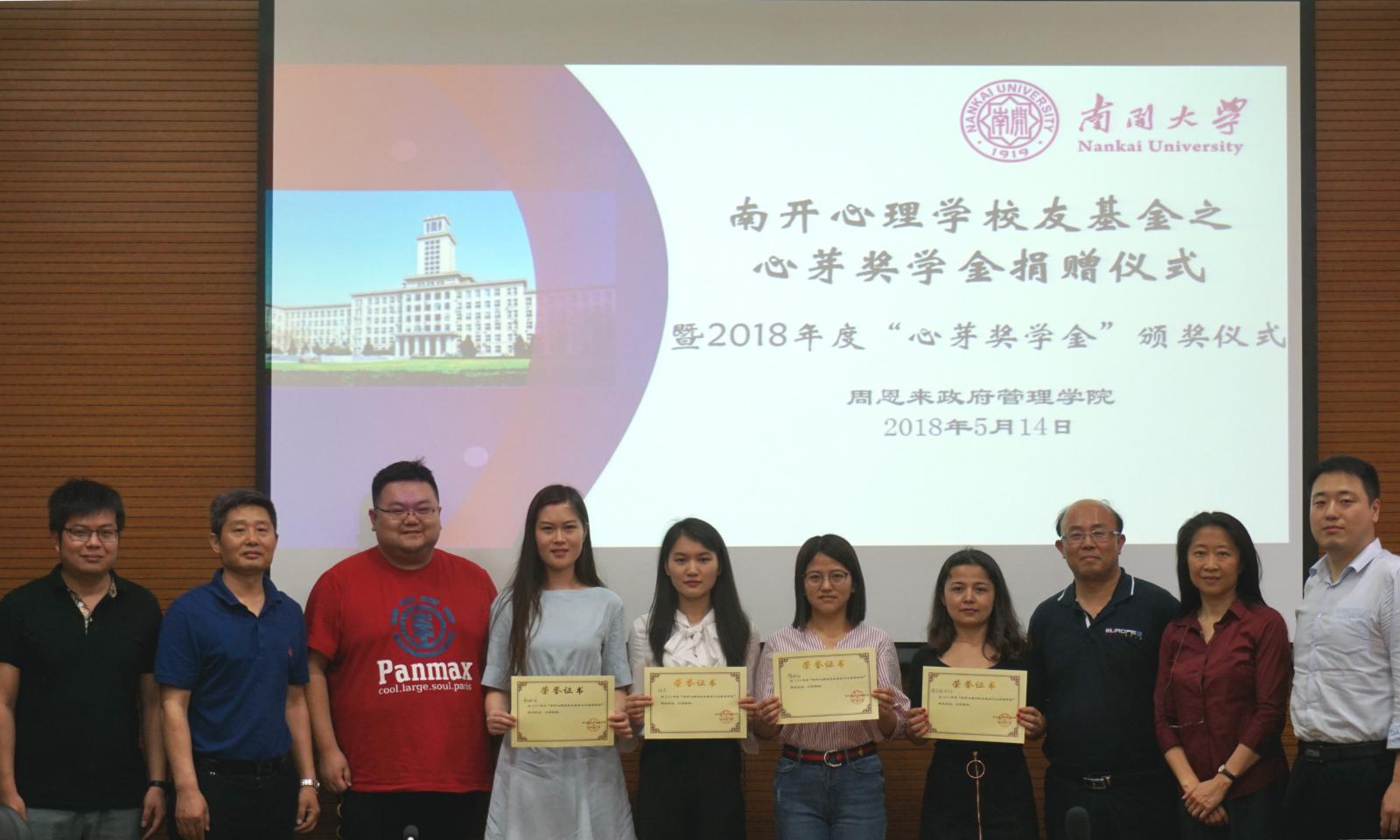 5月14日,“南开心理学校友基金之心芽奖学金”捐赠仪式暨2017-2018年度“心芽奖学金”颁奖仪式在8bo8即时比分