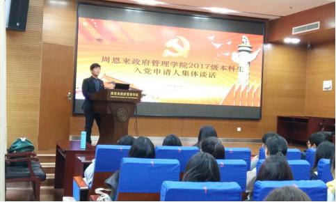首先,李美霓向全体申请人背诵了入党誓词,铿锵有力的誓词让在场的所有申请人都肃然起敬,耿欣伟提出,“每一位申请人从提交入党申请书的那一刻开始,就应该用一个党员的标准来评判和要求自己”。然后,耿欣伟向大家讲述了加入中国共产党的意义和严肃性;要求大家关注时事政治、熟悉党的章程,要求申请人们端正态度、清楚定位、在学习和工作中都对自己“高标准”和“严要求”。其间,他还就党的相关基础理论知识进行了简单的问答,并向大家讲解了学生入党程序。申请人们纷纷表示耿老师的讲解深入人心,未来自己应该真正做到用一名“党员”的标准要求自己,坚定理想信念、不断追求进步。