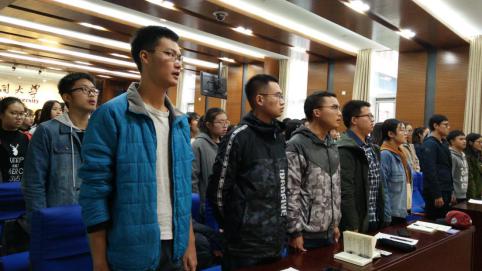 2017级本科新生辅导员耿欣伟在学院报告厅主持召开了2017级本科生入党申请人集体谈话会议。党支部书记杨天威、支委李美霓以及2017级本科生全体入党申请人参与了本次会议。