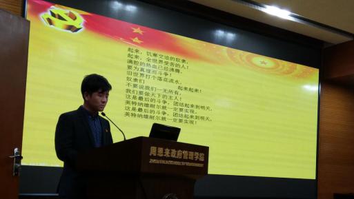 会议最后一项是学唱《国际歌》。杨鉴力和耿老师分别为大家范唱中文版和法语版,会议最终在全体同学的悠长嘹亮的歌声中结束。