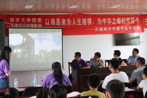 2017年7月3日,南开大学恩来精神展演团暑期社会实践队的一行成员来到安徽省淮南市寿县堰口镇青少年服务中心,并与寿县团委进行了共建南开书屋暨暑期支教活动启动仪式。