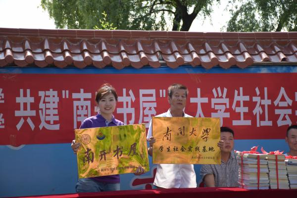 在热烈的掌声中,张存贵校长与王燕老师交接了“南开书屋”与“大学生社会实践基地”铜牌,标志南开大学驻陕西陇县火烧寨峰山小学南开书屋、大学生创业实践基地正式挂牌建立!
