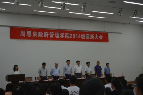 召开2014年迎新大会。出席会议的领导老师有南开大学副校长朱光磊教授、院党委书记王慧老师、院长吴志成教授、副院长孙涛教授、副院长李红钢老师、党委副书记兼副院长奚先来老师、政治学系系主任程同顺教授、社会学系系主任赵万里教授及2014级各专业班导师。参加大会的还有2014级本、硕、博的新生们。此次大会由院党委书记王慧老师主持。