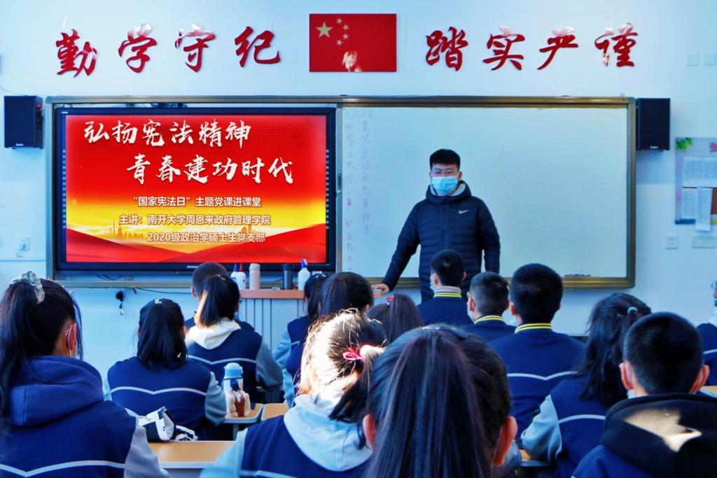 (通讯员 杨晓颖、薛博文)“国无法不治,民无法不立。在决胜全面建成小康社会取得决定性成就,乘势而上开启社会主义现代化建设新征程的今天,我们更要学习宪法、尊崇宪法、维护宪法,践行法治精神”。12月4日,是我国第七个国家宪法日。当天,新疆阿勒泰地区第二高级中学的一堂政治课上,南开大学的研究生党员以远程视频连线的形式为孩子们讲授了“弘扬宪法精神、青春建功时代”的专题微党课。