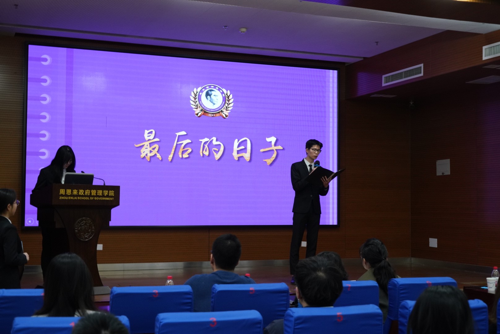 “南开杰出校友周恩来总理就是新型殡葬方式的倡导者与践行者。”政府学院恩来精神展演团以沉浸式演讲的方式讲述周恩来事迹的同时,引导师生回顾共产党峥嵘岁月,缅怀革命英烈,并呼吁青年人护持红色基因、传承美丽中国之遗志,弘扬传统祭祀礼俗,将绿色安葬、文明祭祀的理念深入于心、转化为行。