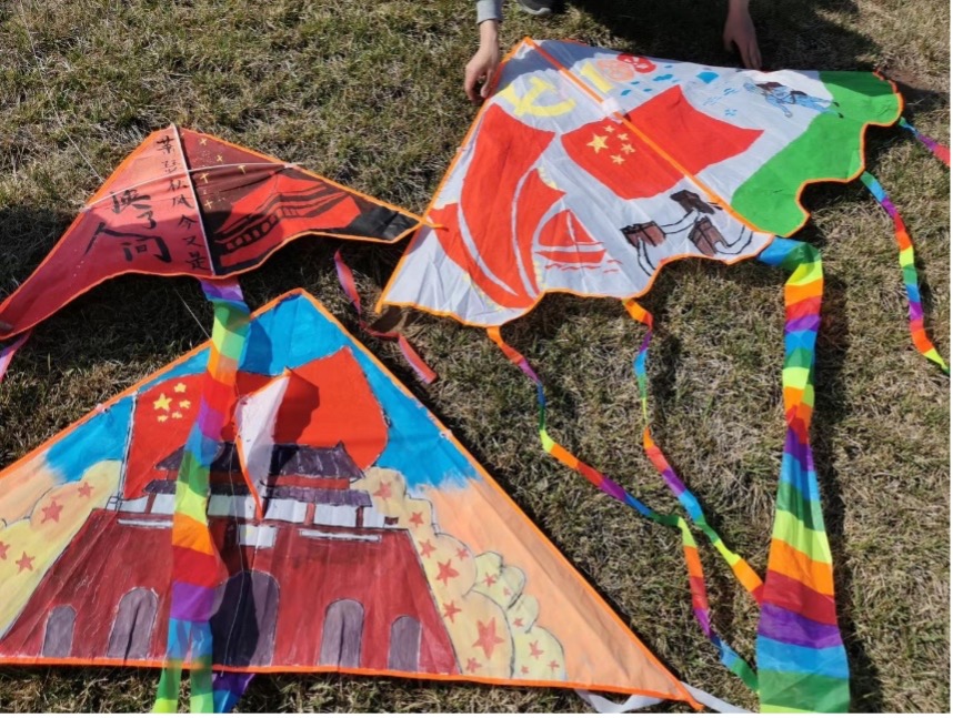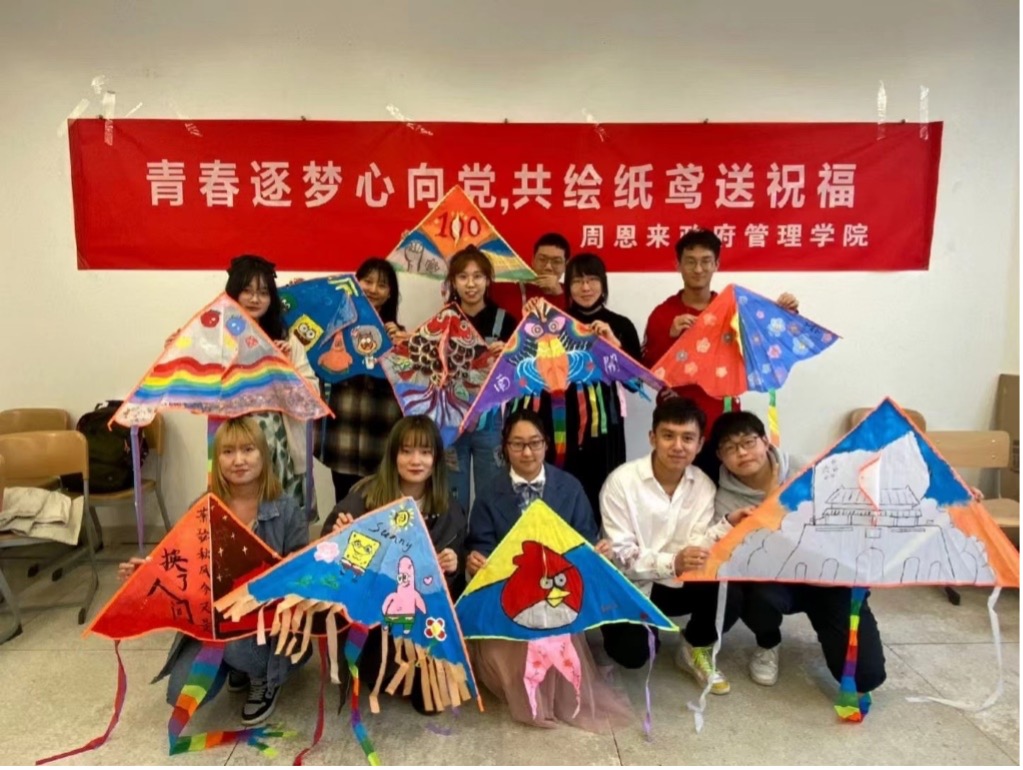 “我的想法是在风筝上绘制了国旗与万里长城,表达对祖国山河的热爱”、“希望我的风筝可以描绘红军战士爬雪山过草地的艰辛历程,纪念先烈们革命成果的来之不易”……周政学子用心创作出具有深刻意义和独特风格的精美风筝,展现了政府学院青年学子爱党爱国、开拓进取的精神风貌。