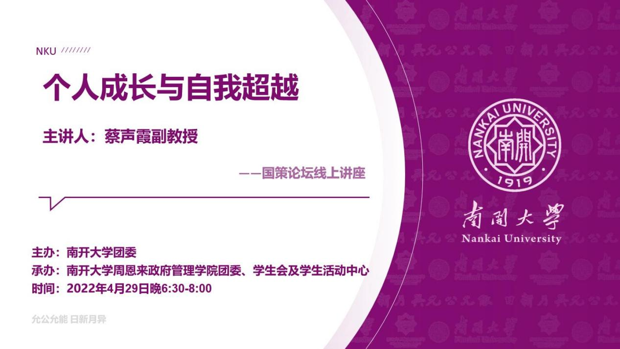 (通讯员:郑宗鹏 张子辰 罗佳瑜)为深入学习贯彻习近平总书记关于青年工作的重要论述及指示精神,为广大南开学子搭建同良师益友学习交流的成长平台,4月29日晚,政府学院成功举办南开大学国策论坛线上讲座,为同学们带来了一场相约“云端”、对话学者的学术盛宴。