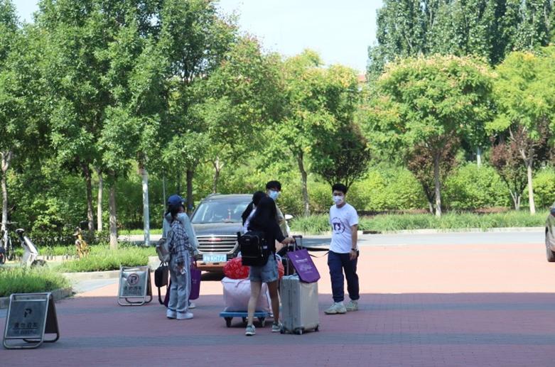 新生完成报到相关程序后相继返回宿舍进行清扫整理,党委书记王慧、党委副书记兼副院长宋媛、团委书记王修彦及其他团委老师共同前往新生宿舍进行关心与慰问。