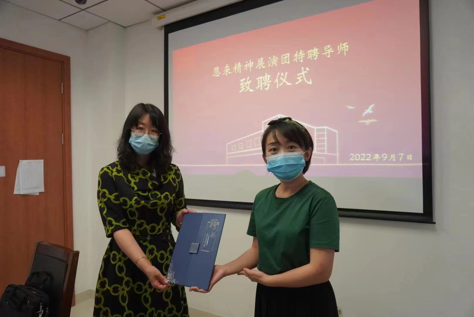 恩来精神展演团特聘导师聘任仪式在学院302会议室举行,学院党委副书记兼副院长宋媛,恩来精神展演团指导老师陈佩其,以及部分学生代表出席了此次聘任仪式。