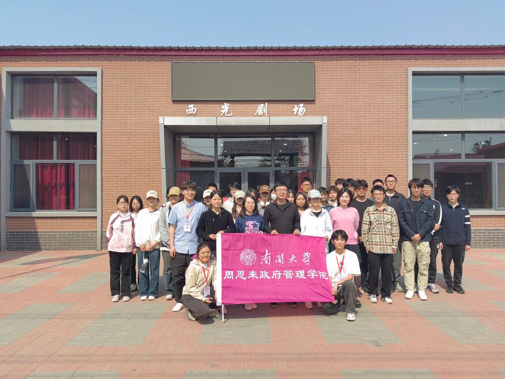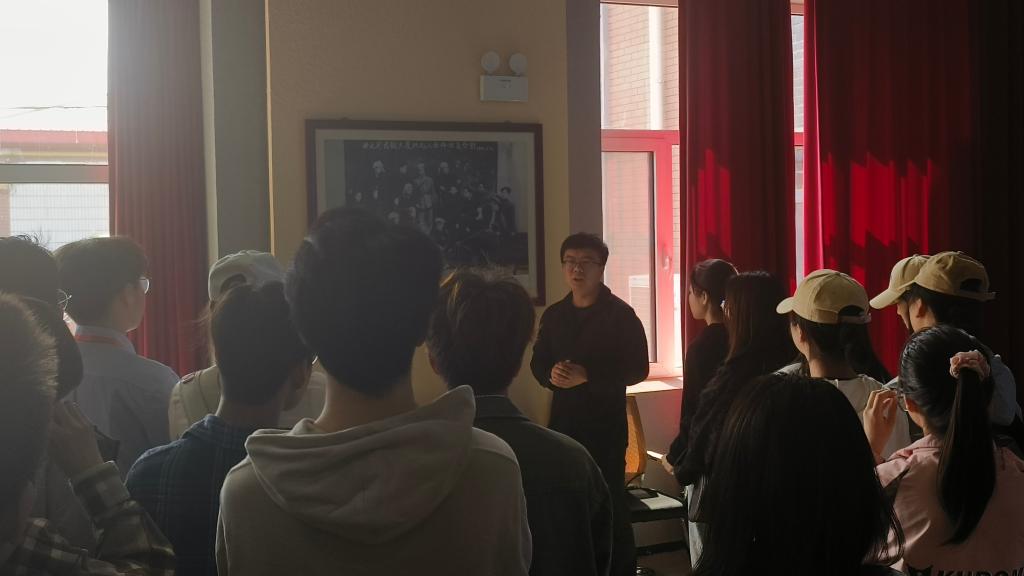 农业兴则国家兴,全面推进乡村振兴是新时代建设农业强国的重要任务。作为天津市首批启动的100个乡村振兴示范村创建村之一的西小站村,依托村庄优势和发展实际,明确了“红色”和“绿色”两条发展主线,大力推动文旅融合高质量发展,促进产业整合增效、农民增收。在村党总支书记李路鑫的带领下,学院师生先后参观了西光剧社和村史风物馆。延续西小站村戏曲文化传统的西光剧社于2021年打造完成,成为该村重要文旅项目,也是乡村文艺工作的重要平台。李路鑫通过剧社内的一幅任务合照,向大家介绍了解放初期在红军的协助下,西小站村村民与代表压迫剥削的地主阶级不懈抗争的感人故事,这一故事也正是剧社红色短剧的起源。村史风物馆承载着西小站村的过往历史和风土风貌,李路鑫向大家介绍西小站村小站稻种植历史以及绿色农业发展现状,以及与津南区国企合作建设的500亩小站稻田、绿色农业大棚以及村内随处可见的光伏板低碳发电技术。学院师生围绕村落发展、生态保护、经济发展等问题请教探讨,对于村庄的历史、农耕文化和相关的非物质文化遗产有了更为深入的了解。
