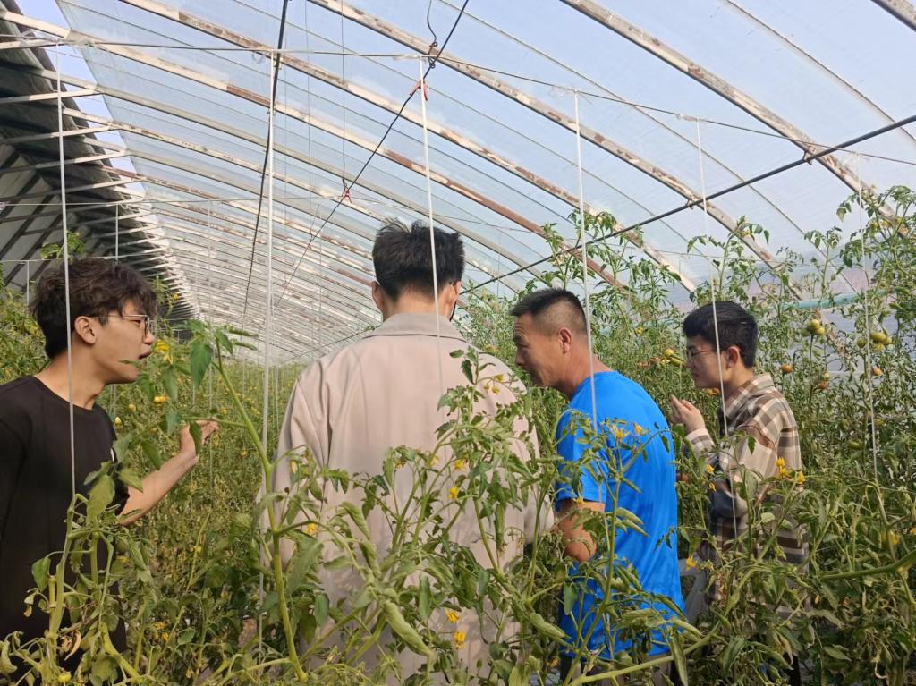 被称为津南区“小西藏”的北中塘村,产业发展载体丰富,特色产品优势突出。近年来,随着乡村振兴战略的深入推进,北中塘村温室大棚种植户逐渐探索出一条适合当地条件的种植西红柿的路子。种植品种为铁皮西红柿,因其酸甜可口、多汁饱满等特点,备受群众青睐,一经上市,供不应求。北中塘村看准了铁皮柿子的市场前景,引进优势品种进行种植,每座大棚年产西红柿近6000斤。在北中塘村党总支委员李凤军的带领下,学院师生走进西红柿大棚,了解西红柿品种选育、种植栽培、灌溉施肥、产量收益等情况,感悟“乡村振兴+采摘园+旅游业”的乡村发展新模式,共同采摘,分享收获喜悦。