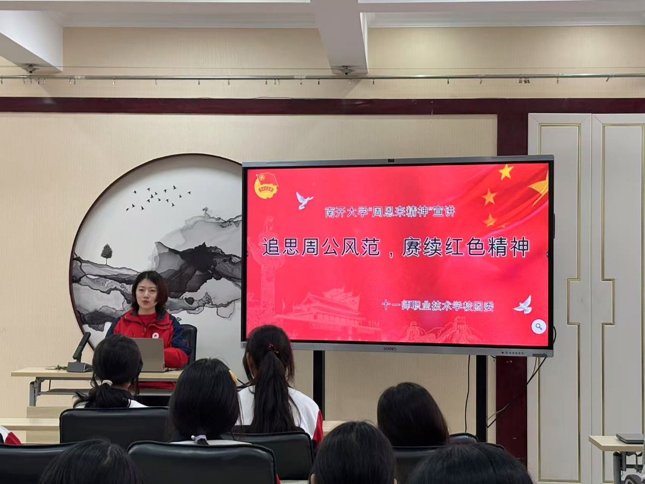 在清明节来临之际,为缅怀革命先辈,传承红色基因,4月2日下午,恩来精神展演团受邀为兵团第十一师职业技术学校进行展演。本次活动由天津市第二期马克思主义政治人才培养工程学员、“津石榴”西部支教团兵团第十一师工作组领队、南开大学8bo8即时比分