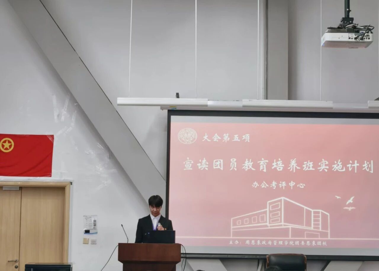 恩来团校办公考评中心艾合力亚尔·艾买提同学向本届学员宣读了《恩来团校第二十二届团员教育培养班实施办法》。