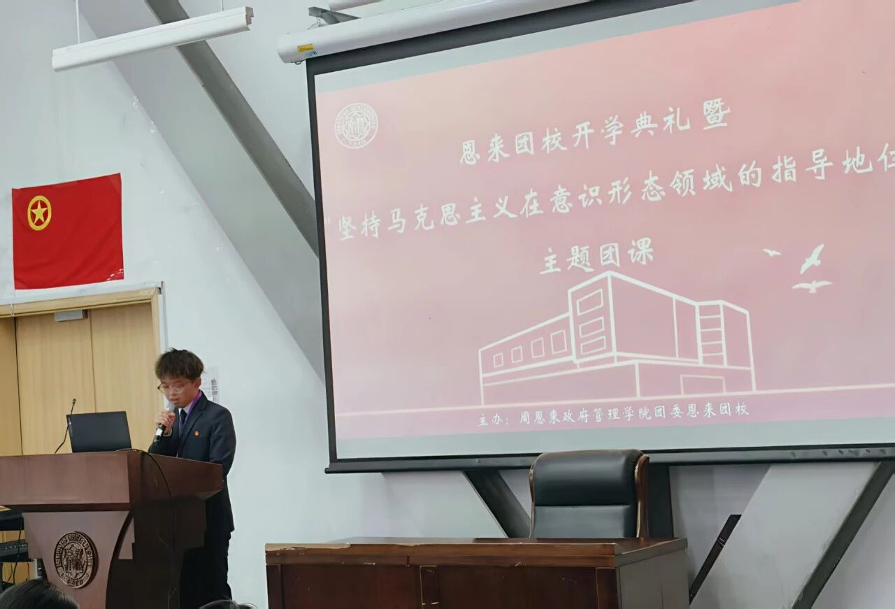 团委恩来团校第二十二届团员教育培养班(秋季学期)开学典礼暨“坚持马克思主义在意识形态领域的指导地位”主题团课在大通学生活动中心F203顺利举行。