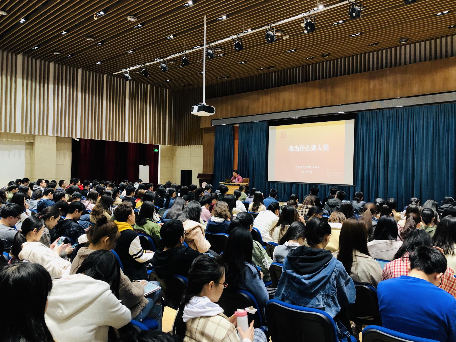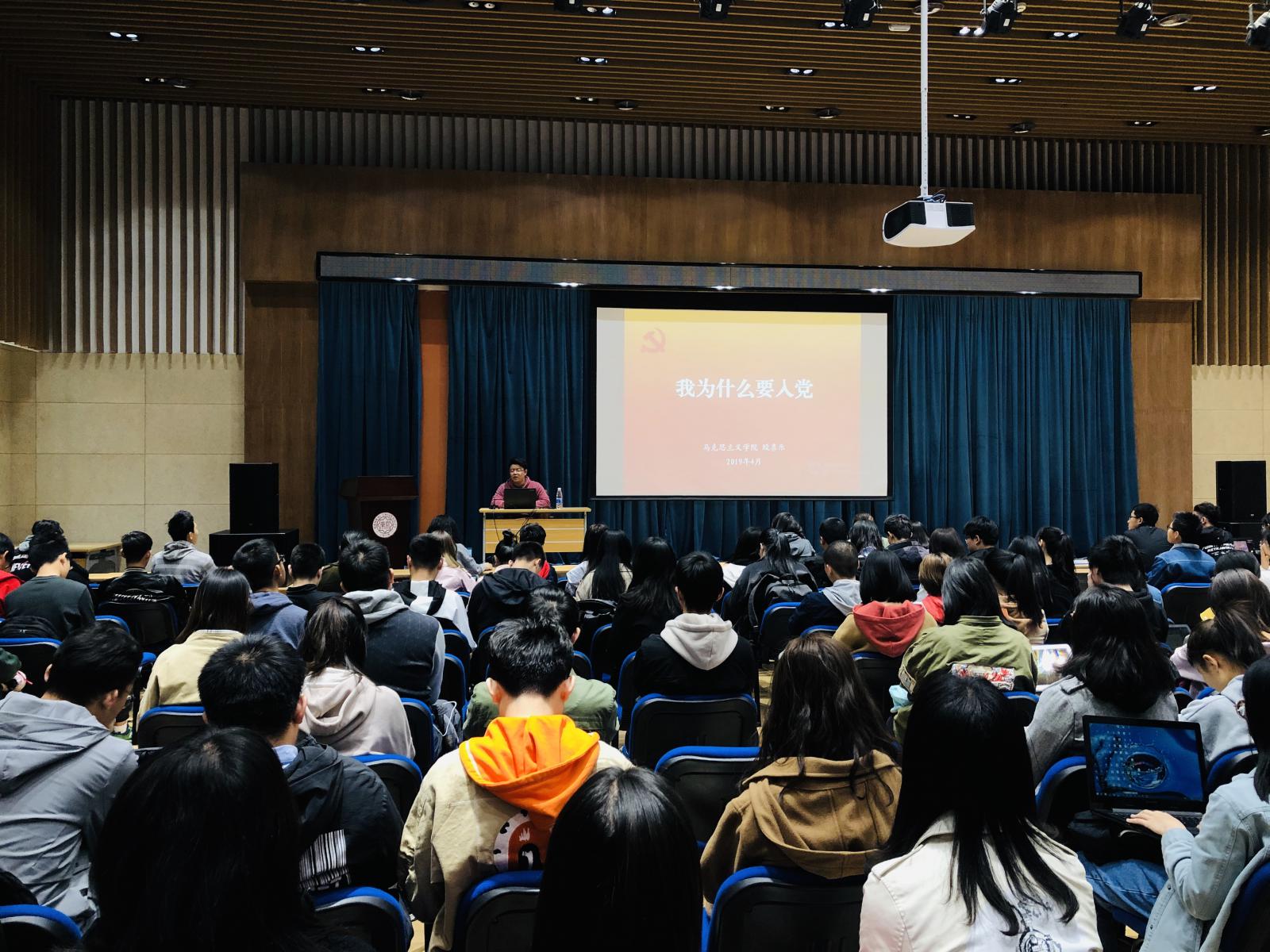 于4月19日中午和晚间与软件学院、旅游学院共同组织了积极分子培训班第四讲:我为什么要入党?以及第五讲:坚持中国特色社会主义教育发展道路,培养德智体美劳全面发展的社会主义建设者和接班人。分别有幸请到了马克思主义学院党委殴喜乐老师与全国党的建设研究会特邀研究员、马克思主义学院张健教授为大家进行讲授。