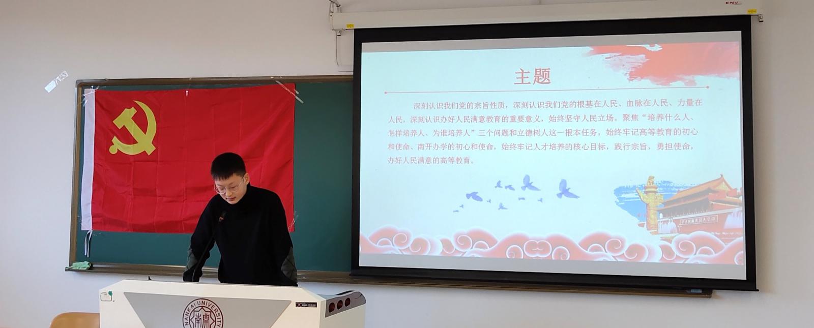 张宗和贾正宇代表第二小组围绕“树牢根本明宗旨,坚守人民立场,办好人民满意教育”的主题进行了学习分享,张宗介绍了小组成员认真学习文件原文、积极参与主题讨论、踊跃撰写学习心得并形成2万余字学习总结的情况,贾正宇讲述了小组成员学习《中国梦,复兴路》《实现中华民族伟大复兴的中国梦》《坚持把服务中华民族伟大复兴作为教育的重要使命》《张富清同志的先进事迹》《黄文秀同志的先进事迹》《坚持以人民为中心》《坚持以人民为中心发展教育》等文件的心得感受,并着重把握了南开大学与中华民族伟大复兴之间的密切联系,认为“爱国精神是我们南开的灵魂。我们要把握这一优势,把爱国精神和中国梦结合在一起,走出属于我们南开自己的特色,并贯彻在学校建设和学校教育中”,强调“永葆党员先进性是“不忘初心、牢记使命”的重要内容,要把对照学习中汲取到的重要精神和宝贵经验转化为一种行动自觉、纪律自觉”,立志和同学们一道始终扎根中国大地,做到公能兼备。