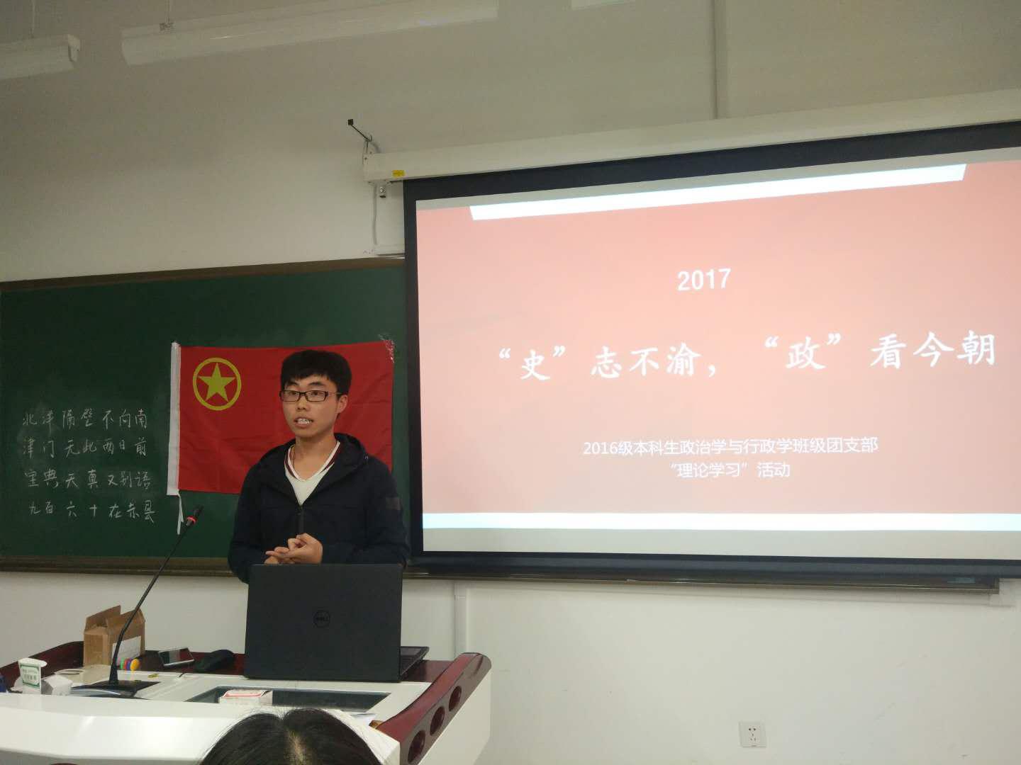 本次理论学习活动是 2016级本科生政治学与行政学班级团支部五四评优系列活动的第一站,也是落实《南开大学共青团改革实施方案》的首次活动,更是学习贯彻"十九大"精神的重要活动。团支部成员积极参与,体现出了极大的热情与团结。本次理论学习活动,进一步增强了团支部团员的理论素养,锻炼了同学们分析时政的能力,提高了班级和团支部的凝聚力与活力,让同学们更深刻地领会了"不忘初心,继续前进"的内涵与"十九大"精神的精髓。相信在这次活动的成功基础上,今后的活动开展一定会更加精彩出色!