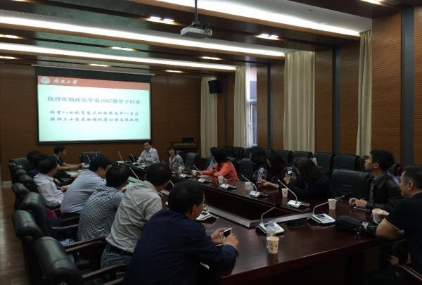[通讯员:韩笑]4月30日上午,我校1987级政治学专业本科生校友重返母校,庆祝入学三十周年。87级是我校政治学系重建后首届政治学专业的本科生,在我校政治学和公共管理的学科发展中具有标志性的意义。龚克校长专此致信祝贺。政府学院主要负责人对校友回家表示热烈欢迎,并代表学院汇报学院发展近况。