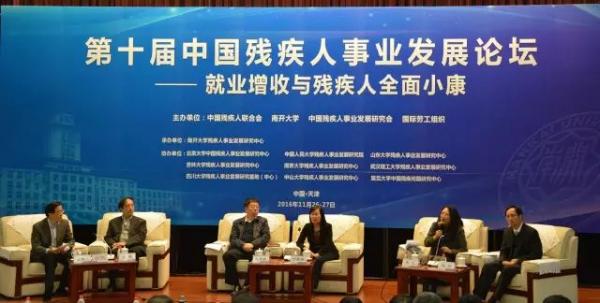 2016年11月26日、27日,“第十届中国残疾人事业发展论坛”在南开大学省身楼举办。本届论坛由中国残疾人联合会、南开大学、残疾人事业发展研究会、国际劳工组织主办,南开大学残疾人事业发展研究中心承办。论坛以“就业增收与残疾人全面小康”为主题,围绕残疾人就业增收问题,研究探索在全面建成小康社会、全面深化改革和坚决打赢脱贫攻坚战的背景下,进一步推进残疾人就业增收的保障机制和途径方法。