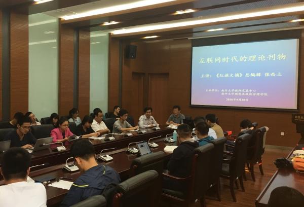 (通讯员 王亚琪)近日,《红旗文摘》总编辑张西立做客“周恩来论坛”并发表“互联网时代的理论刊物”主题演讲。讲座由8bo8即时比分
