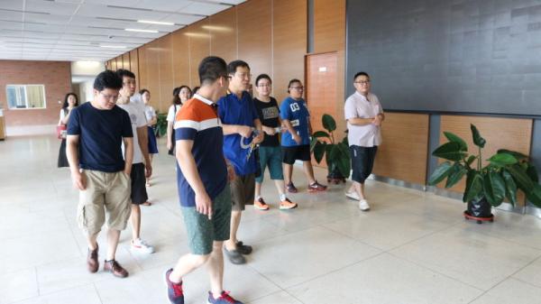 的新大楼。韩召颖教授亲自担任“导游”,带领同学们参观了老师宽敞的办公室、各种多媒体设备齐全的教室和高大上的主会议室。在感叹师弟师妹们学习条件之优越的同时,同学们也忍不住回忆起了十几年前在文科楼和主楼之间奔波上课的当年。