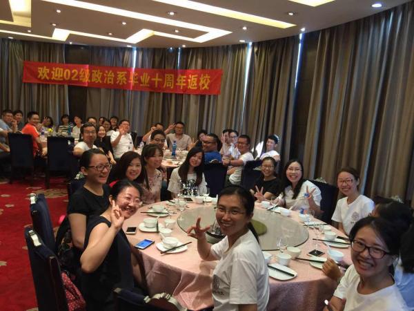 活动得到了学院的大力支持。院长吴志成教授、国际关系系系主任韩召颖教授、02级政治学系当年的班导师王翠文副教授参与了聚会,给予了学生们最热情洋溢的欢迎。