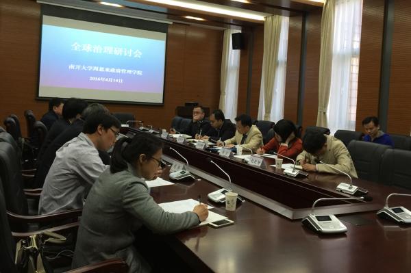 与我校专家就“全球治理”问题进行了研讨,院长吴志成教授主持研讨。研讨主要议题包括:全球治理基本理论,主要大国参与全球治理的实践,新中国参与全球治理的历程、经验和教训,如何更好地参与全球治理以及通过参与全球治理宣传和推广我国治国理政经验等。