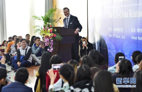 3月23日,美国前国防部长科恩在南开大学演讲。新华网发(游思行摄)