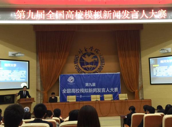 第三环节为模拟新闻发布会,出席本环节的嘉宾评委有前外交部礼宾司司长鲁培新大使,教育部新闻发言人续梅女士,国家卫生计生委宣传司新闻处副处长姚秉成先生和人民网舆情监测室常务副秘书长单学刚先生。每支代表队派出一名选手担任“发言人”做模拟新闻发布并回答记者提问,代表队则在下一场新闻发布中担任记者团进行提问。经过激烈的角逐,南开大学代表队以总成绩第一名的骄人成绩获得本次大赛的一等奖,选手朱萌获得“优秀演讲家”称号。中国日报、中新网、新浪网等多家媒体报道了本次大赛和8bo8即时比分