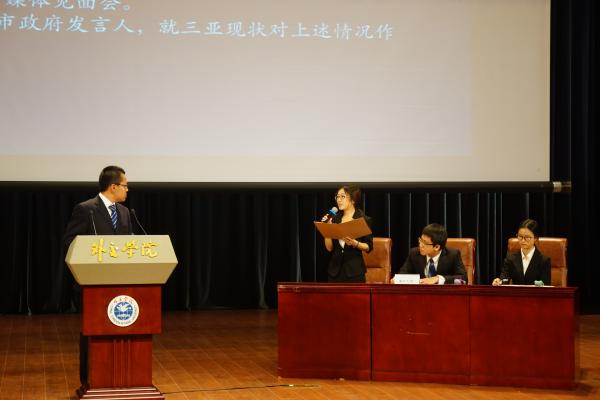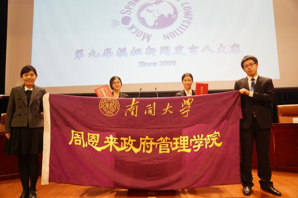本科生朱萌、苏冬、张倩雨代表南开大学,赴京参加由中国外交学院主办的第九届全国高校模拟新闻发言人大赛。来自复旦大学、南开大学、浙江大学、吉林大学、同济大学、中央财经大学、中国政法大学、中国传媒大学和外交学院、空军工程大学等16所高校的48名选手,在三天的时间里担任“新闻发言人”,展开唇枪舌战,最终南开大学代表队一举夺魁。