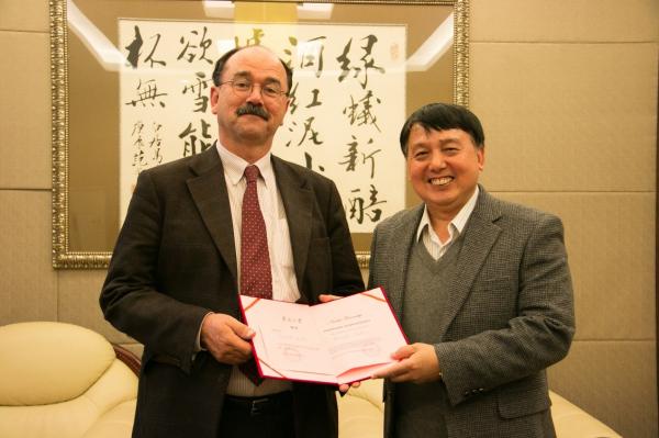 、法学院、经济学院和国际学术交流处等负责人,会见中两位专家愉快地接受了我校的邀请,成为南开大学中国国际发展研究中心专家委员会委员,佟家栋副校长亲自为两位专家颁发了聘书。