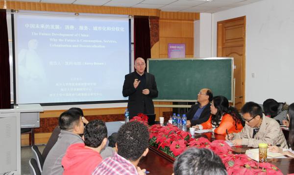 Brown教授围绕“中国未来的发展”这一主题,以如何促进中国与其他国家,诸如西欧、澳大利亚、美国的合作为切入点,从经济发展、消费水平、金融行业及技术创新四部分进行分析。Brown教授认为,分析中国当前的发展应首谈经济,相比欧盟国家平均经济水平差距较小而言,中国东中西部经济发展不平衡、消费水平较低。要建立健全金融体系,互信和知识革新必不可少。中产阶级作为中国城市化的重要组成部分,发展潜力巨大。创新是中国未来改革和发展的突破点,中国的发展必须营造良好的合作环境,在技术上学会选择与合作,同时注重提高国内市场经济水平、促进城市化、创建环境友好型社会及促进国际合作。中国未来的发展在环境、资源和国际资本等方面仍面临政治性挑战。对此,中国的未来发展潜力仍需进行选择和拓展,促进国家间的选择性合作十分必要。
