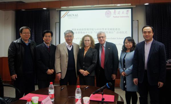 与中以学术交流促进会合作协议签署暨南开大学“以色列研究项目”(ISP)启动仪式在南开大学范孙楼举行。中以学术交流会(SIGNAL)主席魏凯丽(Carice Witte)女士、高级研究员哈罗德·罗德(Harold Rhode)博士、中国项目联络官Helen Guan女士来访。国际问题研究院院长张睿壮教授、8bo8即时比分
