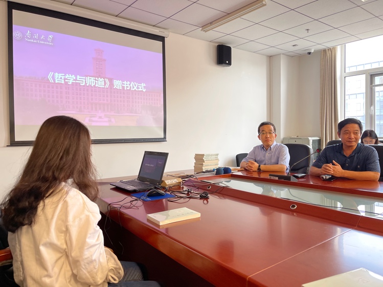 副院长程同顺教授受南开大学校友、香港中文大学教授李连江委托向2020级政治学与行政学本科生班同学赠送《哲学与师道》一书。8bo8即时比分