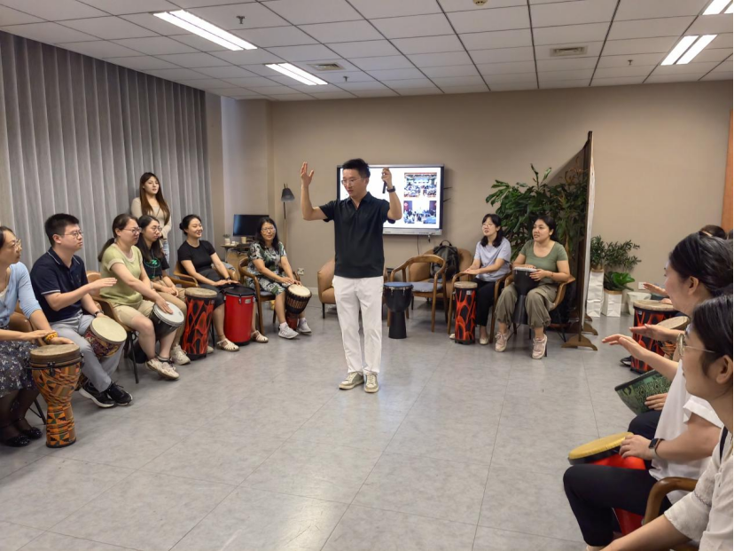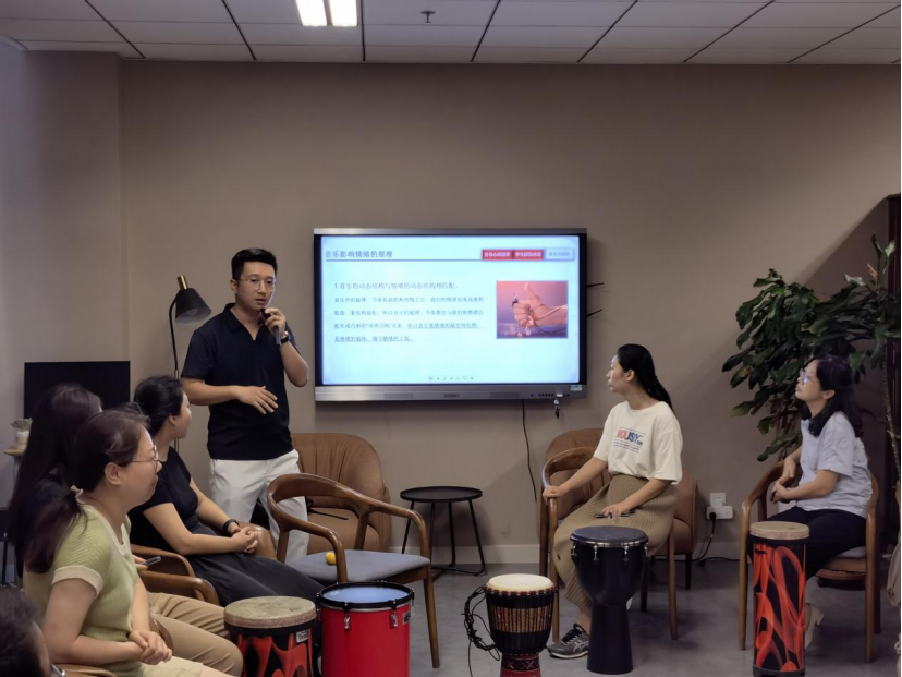 主办、以“释放压力 ‘鼓’舞人心”为主题的音乐团体心理减压讲座在南开大学教职工心理健康服务中心举办。天津音乐学院艺术心理实验室田野老师受邀担任主讲。讲座面向南开所有在职在编教职工开放,老师们积极参与、反响热烈。