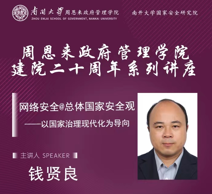 建院二十周年、政治学系复建40周年和南开大学国家安全研究院刚刚成立之际,中央网信办中国网络空间研究院副院长、南开大学政治学系1994级本科校友钱贤良,应邀在我校津南校区公共教学楼C302室为学院师生作专题讲座《网络安全@总体国家安全观:以国家治理现代化为导向》。