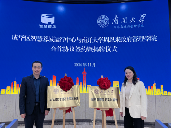 吴晓林与苟霞代表双方签署协议,并为南开大学城市管理实习实训基地、MPA城市管理社会实践基地揭牌。之后,双方将本着优势互补、互惠互利、真诚合作、共同发展的原则,开展政、校多方位合作;在人才培养实训、高校科研平台延伸、科技成果转化、智库合作等方面开展深度合作。