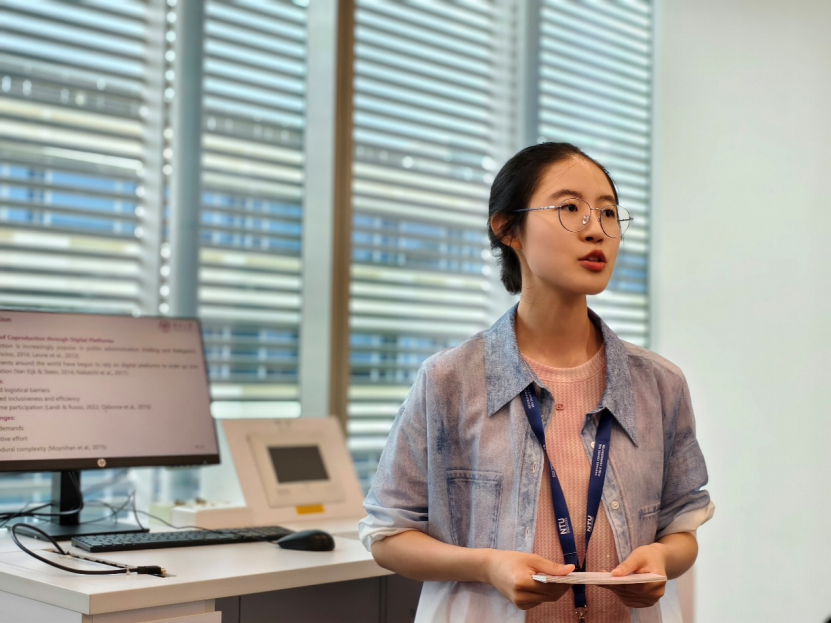 在平行论坛“Digital Transformation and AI Applications in the Public Sector”中,锁利铭教授担任论坛主席,博士生李宁卉作题为《Social Norms and Administrative Burden in Coproduction through Digital Platforms: A Survey Experiment Study in China》的论文汇报,研究探讨了行政负担如何影响公民参与政府数字平台的合供意愿,并分析了社会规范和技术厌恶在其中的调节作用。