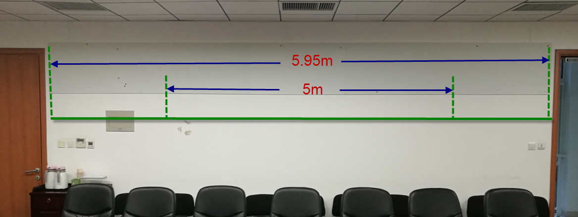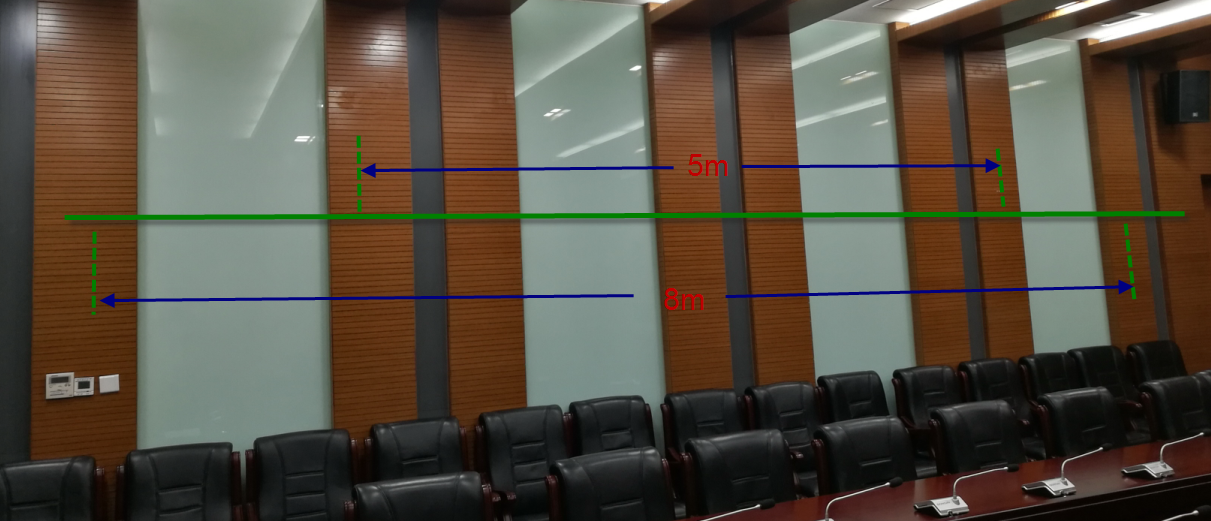 2. 左侧后半部,建议长度:5米,最长不超过5.5米。透明胶带粘贴,会议结束立即清除胶带。