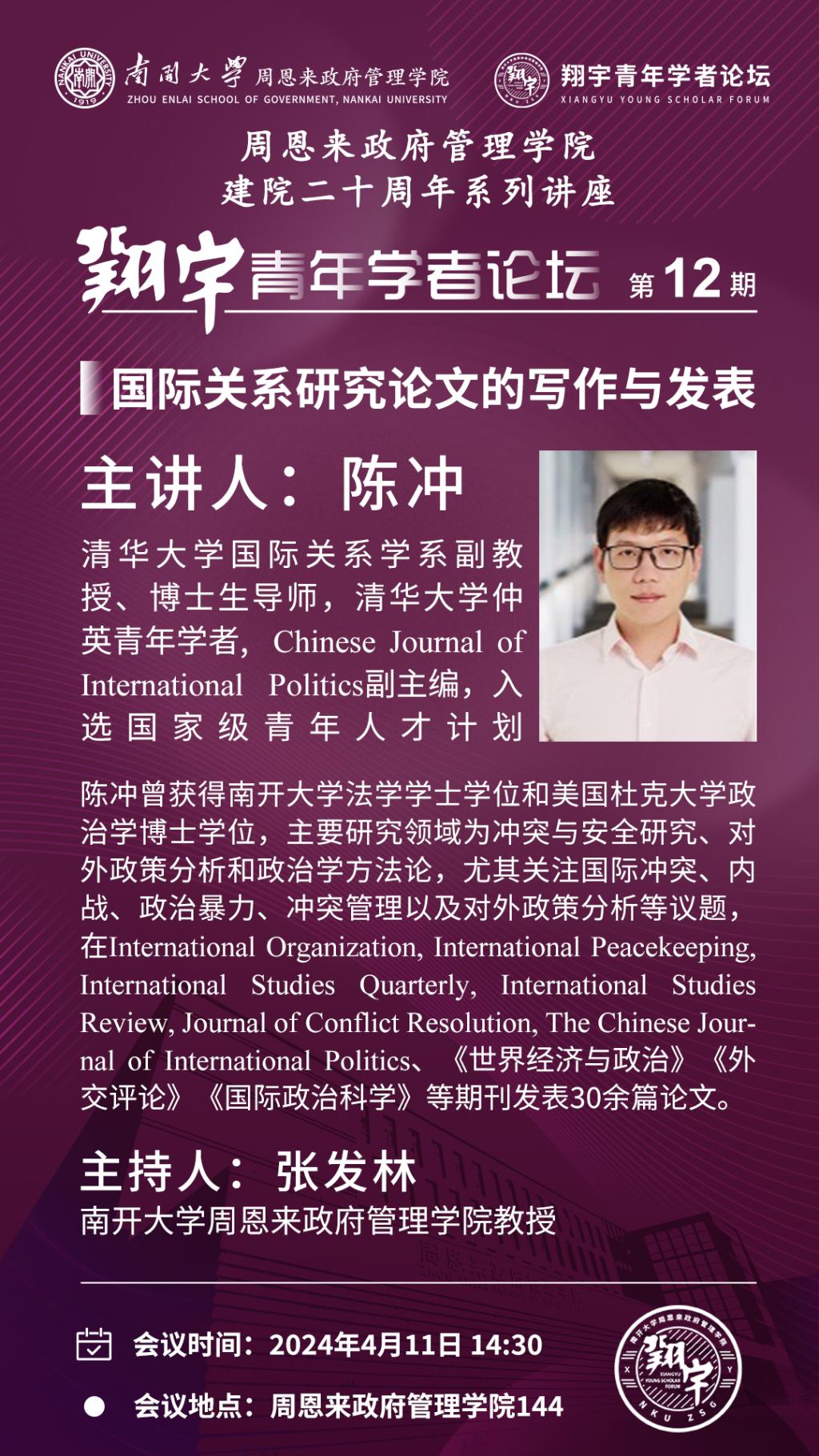 建院二十周年系列讲座:陈冲|国际关系研究论文的写作与发表